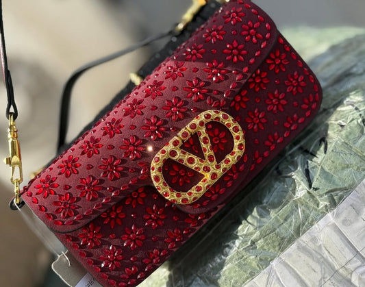 V-A-L-E-N-T-I-N-O G-A-R-A-V-A-N-I Locò Small Shoulder Women Bag – Crystal Floral Edition (Red)