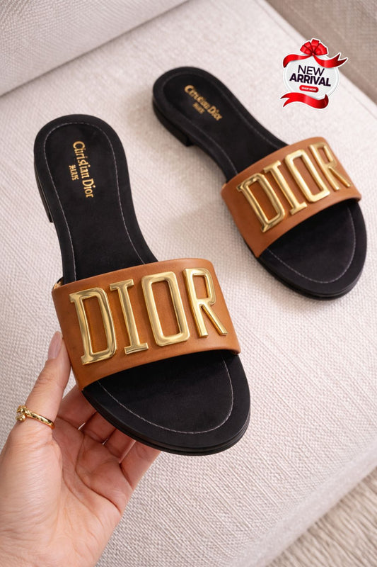 D-I-O-R High Quality Slippers for Girls – Stylish & Comfortable Footwear (Brown)