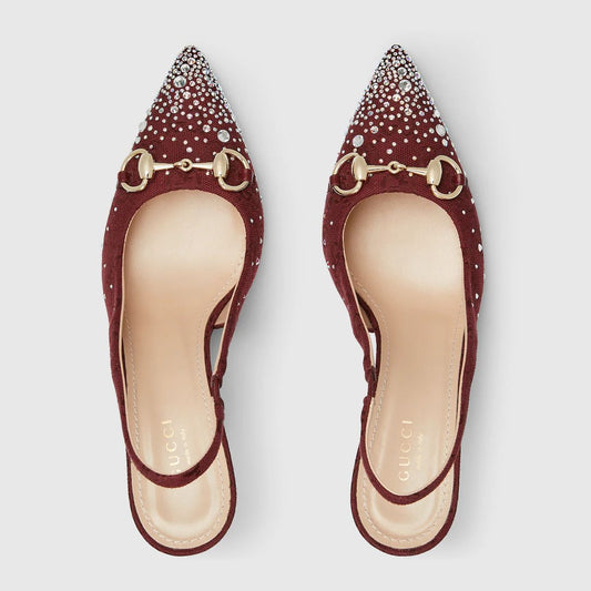 G-U-C-C-I Women’s Slingback Crystal Horsebit Heels – Premium Edition (Red)