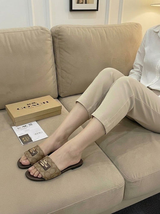 C-O-A-C-H Flat Slippers – Official Model Women Footwear (Brown/Beige)