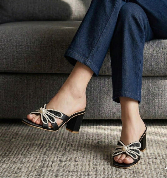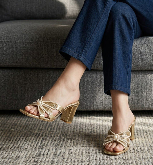 Z-A-R-A Pearl Heels – Elegant Women Footwear (Silver/Brown)