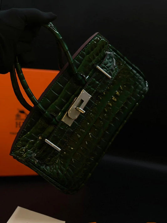 H-E-R-M-È-S Style Croc-Embossed Mini Top-Handle Women Bag – Luxury Inspired (Green)