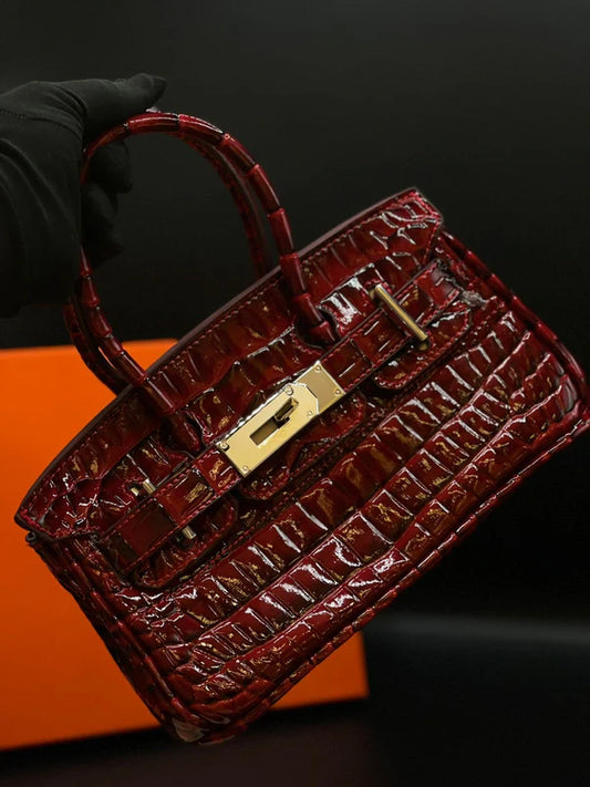 H-E-R-M-È-S Style Croc-Embossed Mini Top-Handle Women Bag – Luxury Inspired (Maroon)
