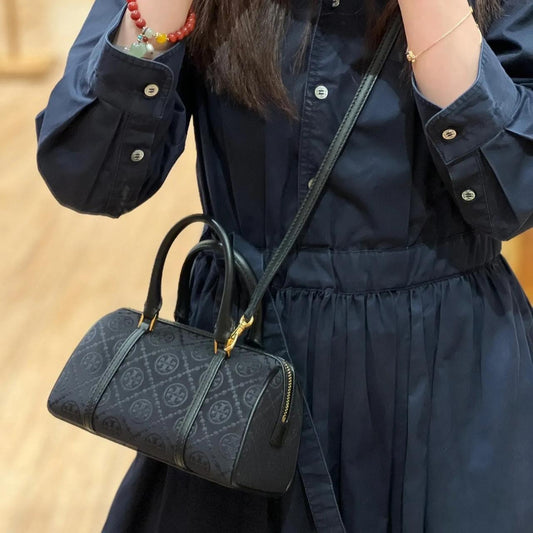 T-O-R-Y B-U-R-C-H T Monogram Petite Barrel Bag – Women Mini Crossbody Bag (Black)
