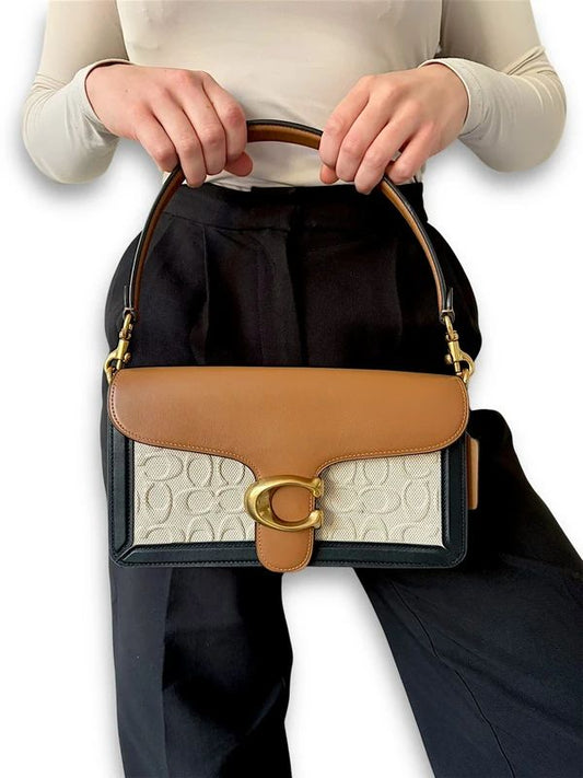 C-O-A-C-H Tabby Shoulder Bag 26 – Blocked Signature Canvas Women Shoulder Bag (Off White with Brown)