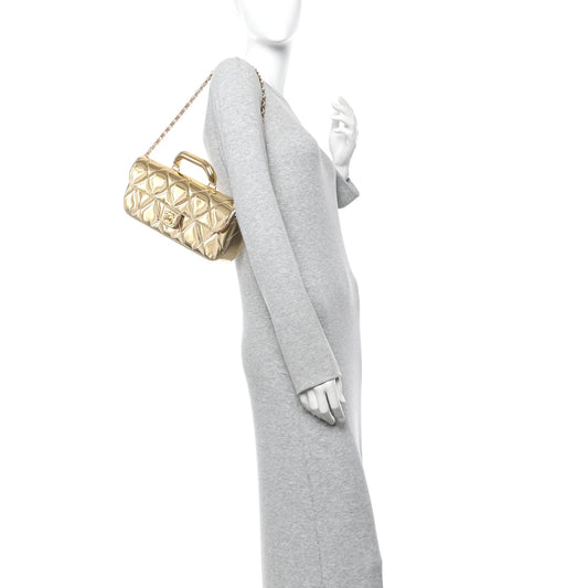 C-H-A-N-E-L Metallic Mirror Large Flap Top Handle Women Bag – Runway Luxury Premium Edition (Gold)