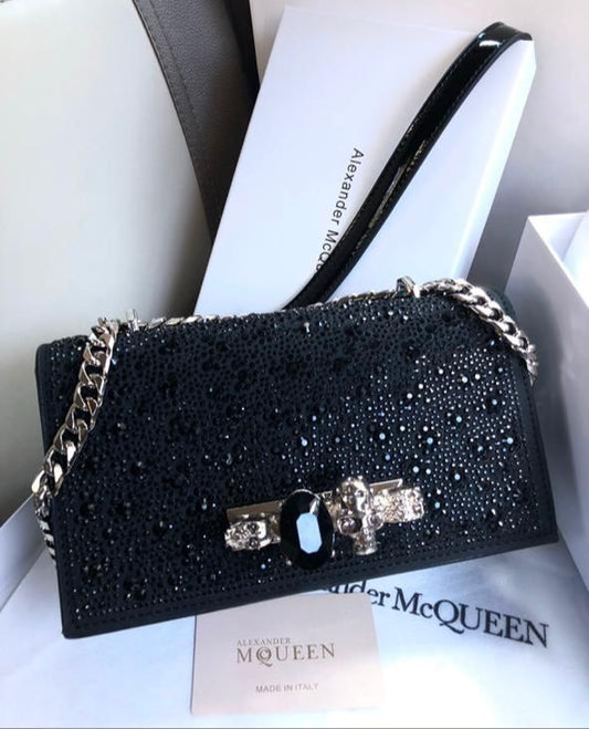 ALEXANDER MCQUEEN CRYSTAL-EMBELLISHED MINI JEWELLED SATCHEL – Women Bag (Black)