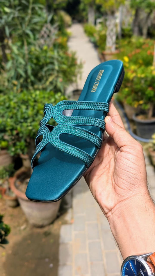 JIMMY CHOO – Women Slippers (Bluish Green)