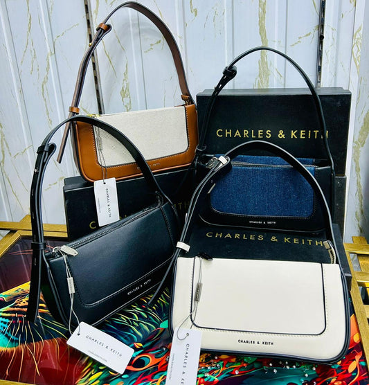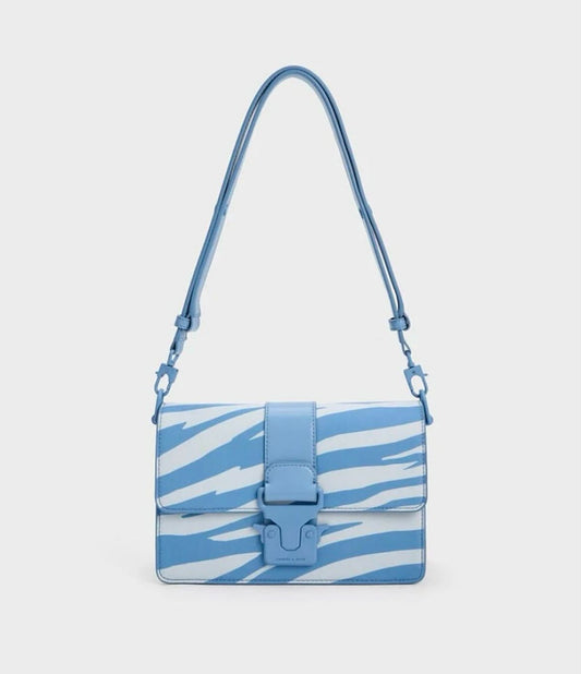 Charles & Keith Push-Lock Shoulder Bag (blue/white)