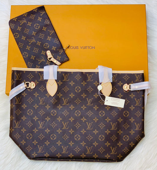 LOUIS VUITTON NEVERFULL – Women Tote Bag 2PC Set (Brown Design 2)
