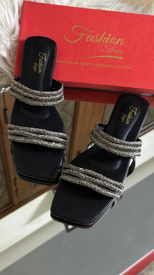 FASHIONSTEPS — Women's 2.5 Inch Heel Slippers (New Arrival | 3 Beautiful Colours | With Brand Box) (Black)