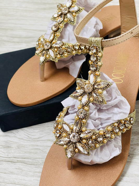 JIMMY CHOO-Inspired Embroidered Sandals – Luxury Women Footwear with Brand Box(Brown)