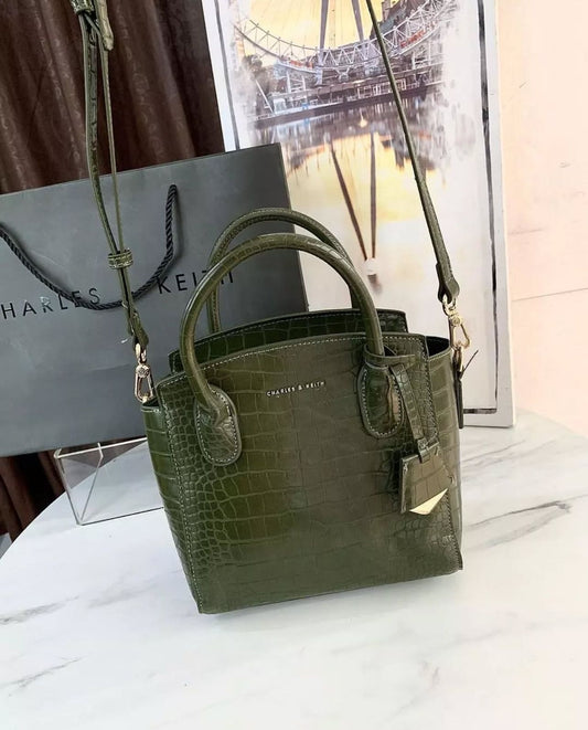 Charles & Keith – Croc-Effect Structured Top Handle Bag (Green)