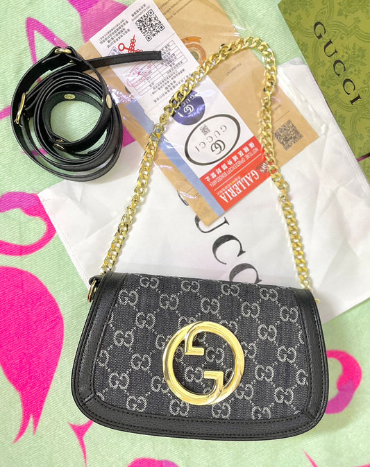 GUCCI Blondie Small Shoulder Bag – Iconic Style with Gold-Toned Hardware (Black)
