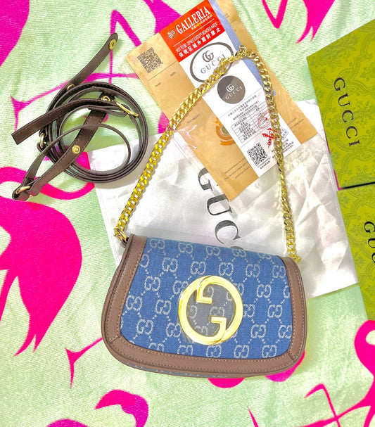 GUCCI Blondie Small Shoulder Bag – Iconic Style with Gold-Toned Hardware (Blue)