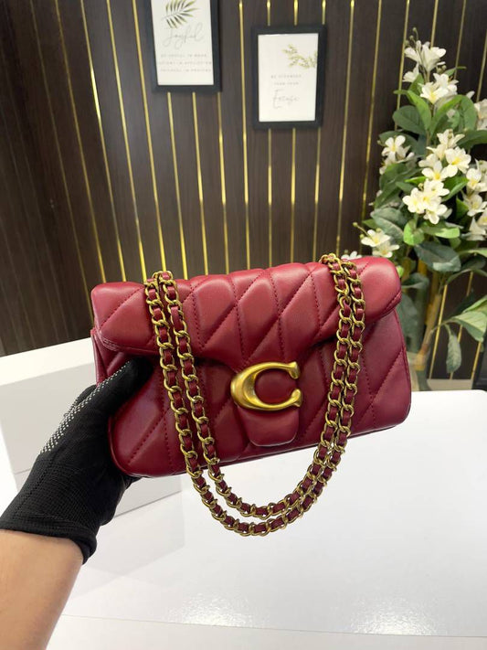 C-O-A-C-H QUILTED TABBY SHOULDER BAG 26 – Women Bag (Maroon with Golden C)