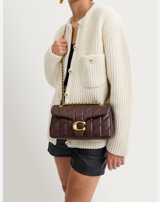 C-O-A-C-H QUILTED TABBY SHOULDER BAG 26 – Women Bag (Dark Brown with Golden C)