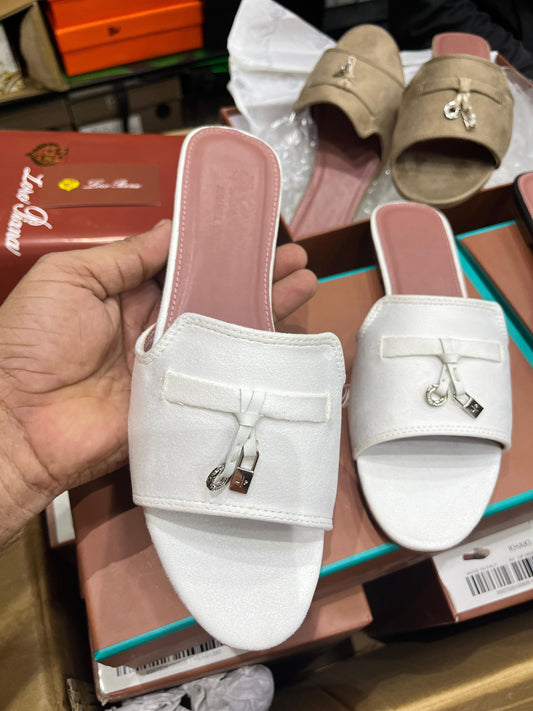 LORO PIANA SUMMER CHARMS – Women Suede Slides (White)