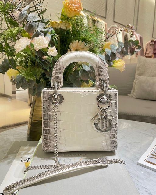 Christian Dior Niloticus Crocodile Himalaya Mini Lady Dior for Women (White/Grey)