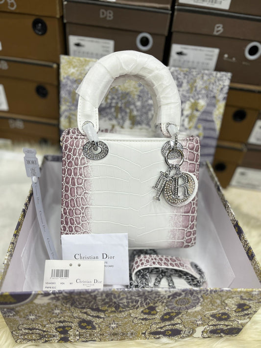 Christian Dior Niloticus Crocodile Himalaya Mini Lady Dior for Women (White/Pink)