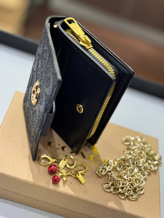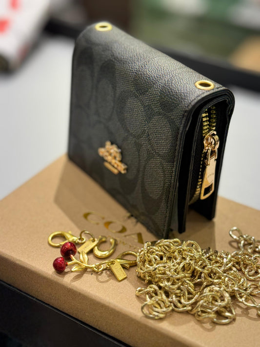 C-O-A-C-H BOXED MINI WALLET ON A CHAIN – Women Bag (Black Design A)