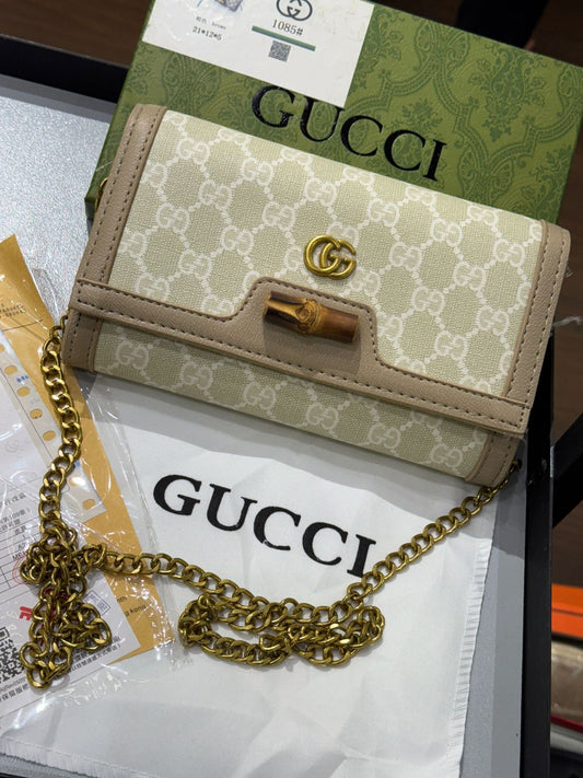 G-U-C-C-I DIANA BAMBOO GG ON CHAIN DENIM – Women Bag (Beige Cream)