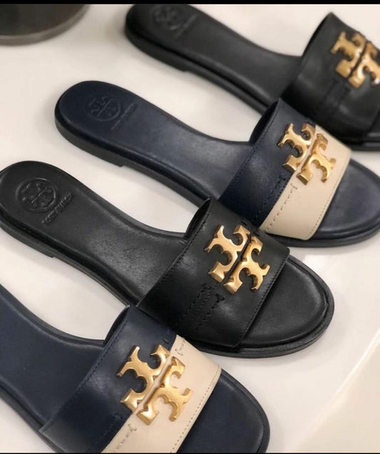 Tory Burch Signature Slippers – New Arrival (Black-Off White)