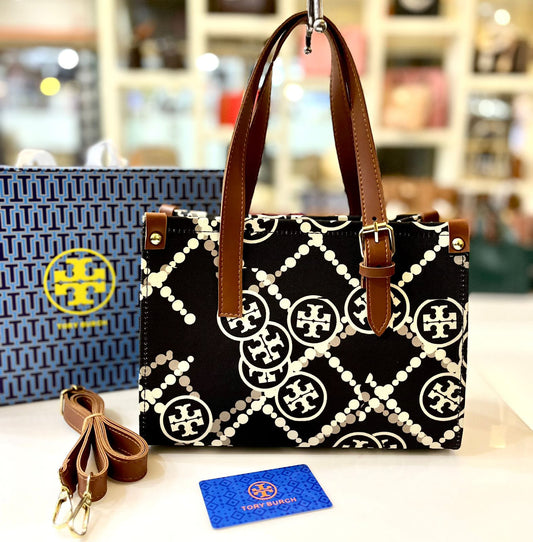 Torry Burch Women's Handbag with Brand Card and Dustbag (Black / White)