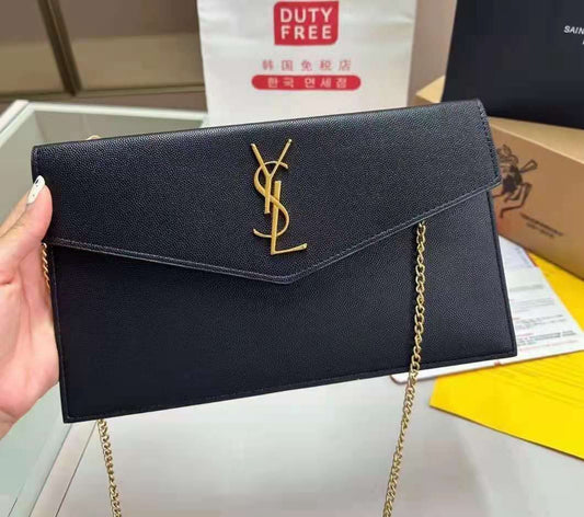 YSL Crossbody Bag — Premium Quality (Long Chain | Brand Card, Dustbag & Box Included) (Black)