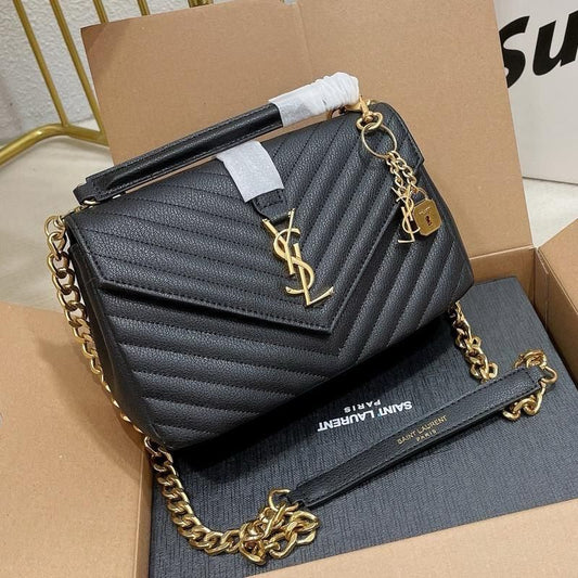 YSL-Inspired Handbag – Premium Quality Women Bag with Gold Accessories & Box(Black)