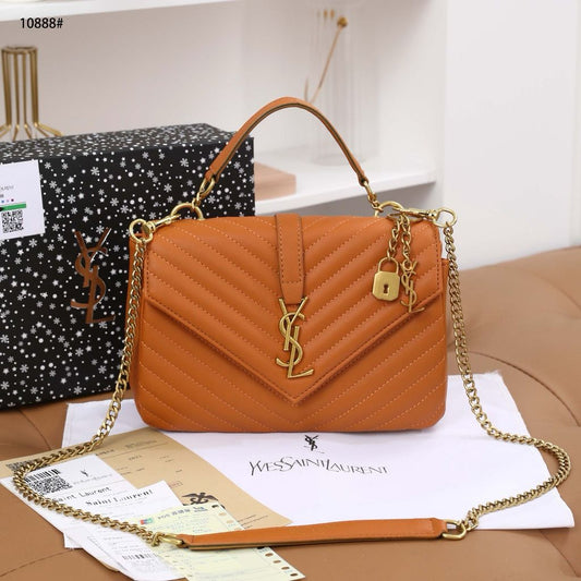 YSL-Inspired Handbag – Premium Quality Women Bag with Gold Accessories & Box(Brown)