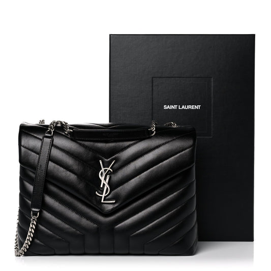 SAINT LAURENT Women's Calfskin Y Quilted Monogram Medium Loulou Chain Satchel
