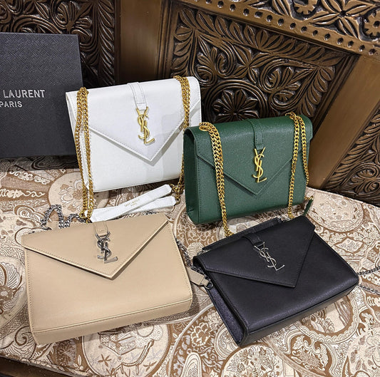 Yves Saint Laurent Premium Quality YSL Bag - With Long Chain and Brand Box (Beige)