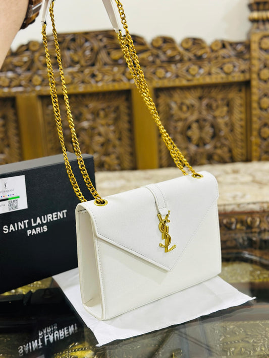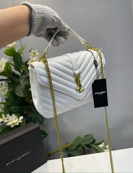 Yves Saint Laurent Premium Quality YSL Bag - With Long Chain and Brand Box (White)