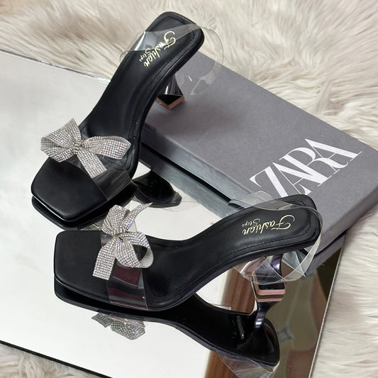 ZARA RESTOCK — Women's Transparent Heel Slippers (Black)