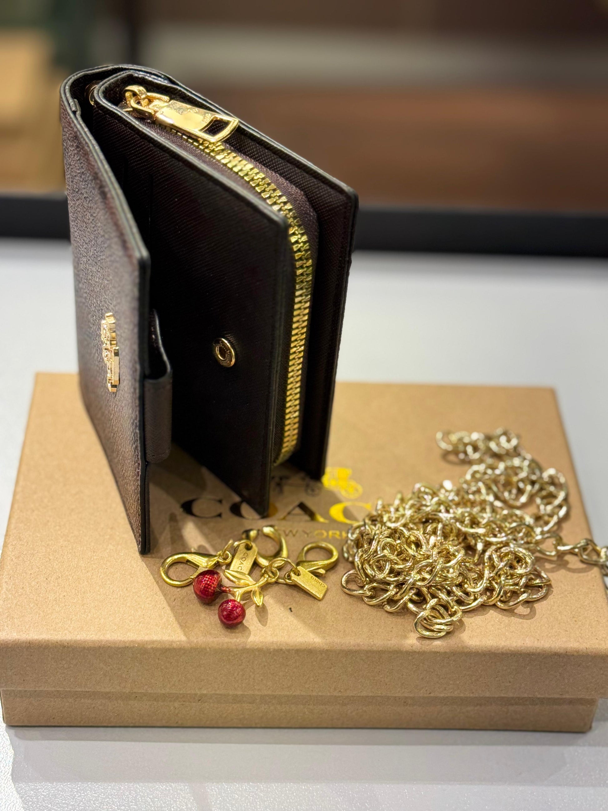 C-O-A-C-H BOXED MINI WALLET ON A CHAIN – Women Bag (Brown Black)