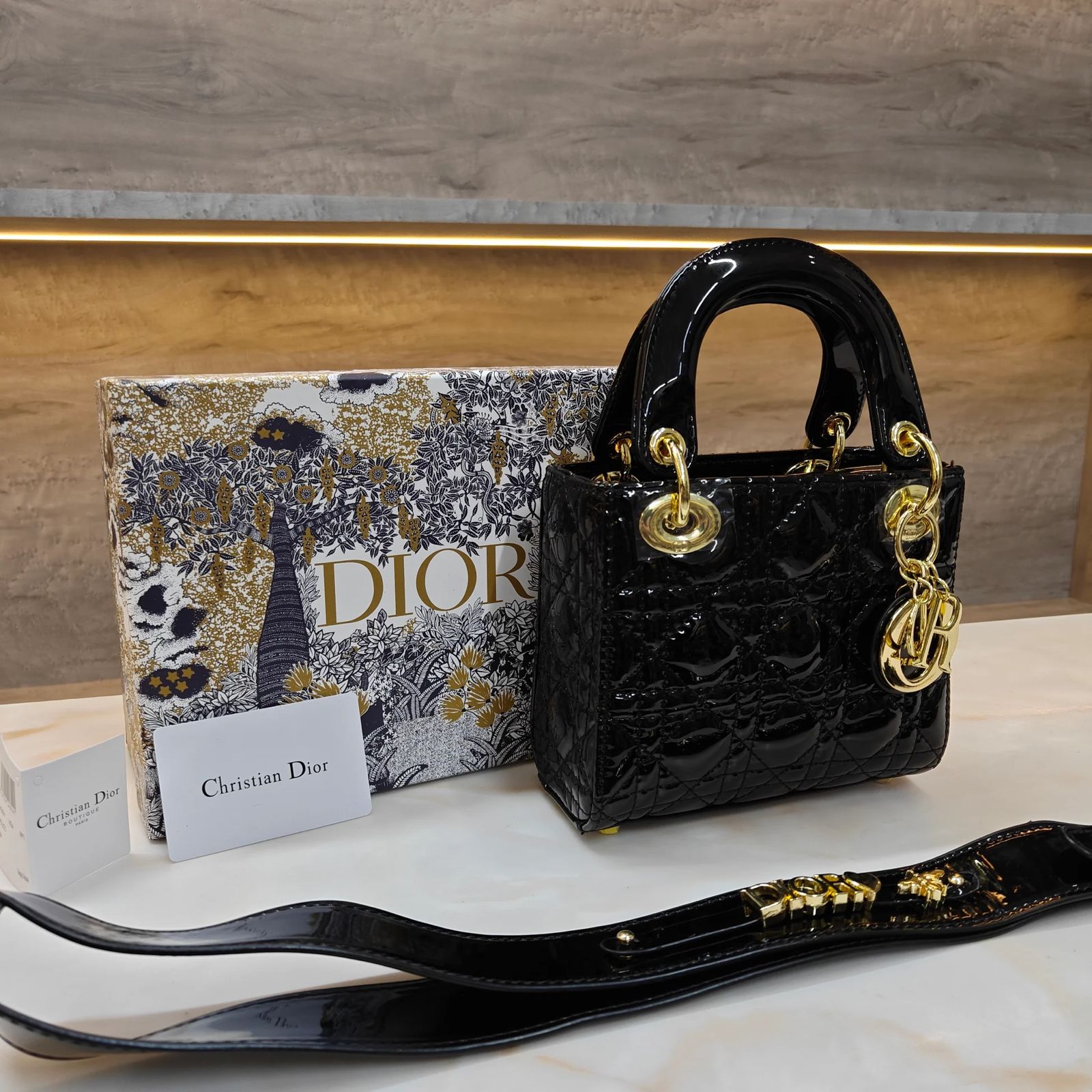 CHRISTIAN DIOR Women Bag – Lady Dior Cannage Patent Leather | Premium Quality (Black)