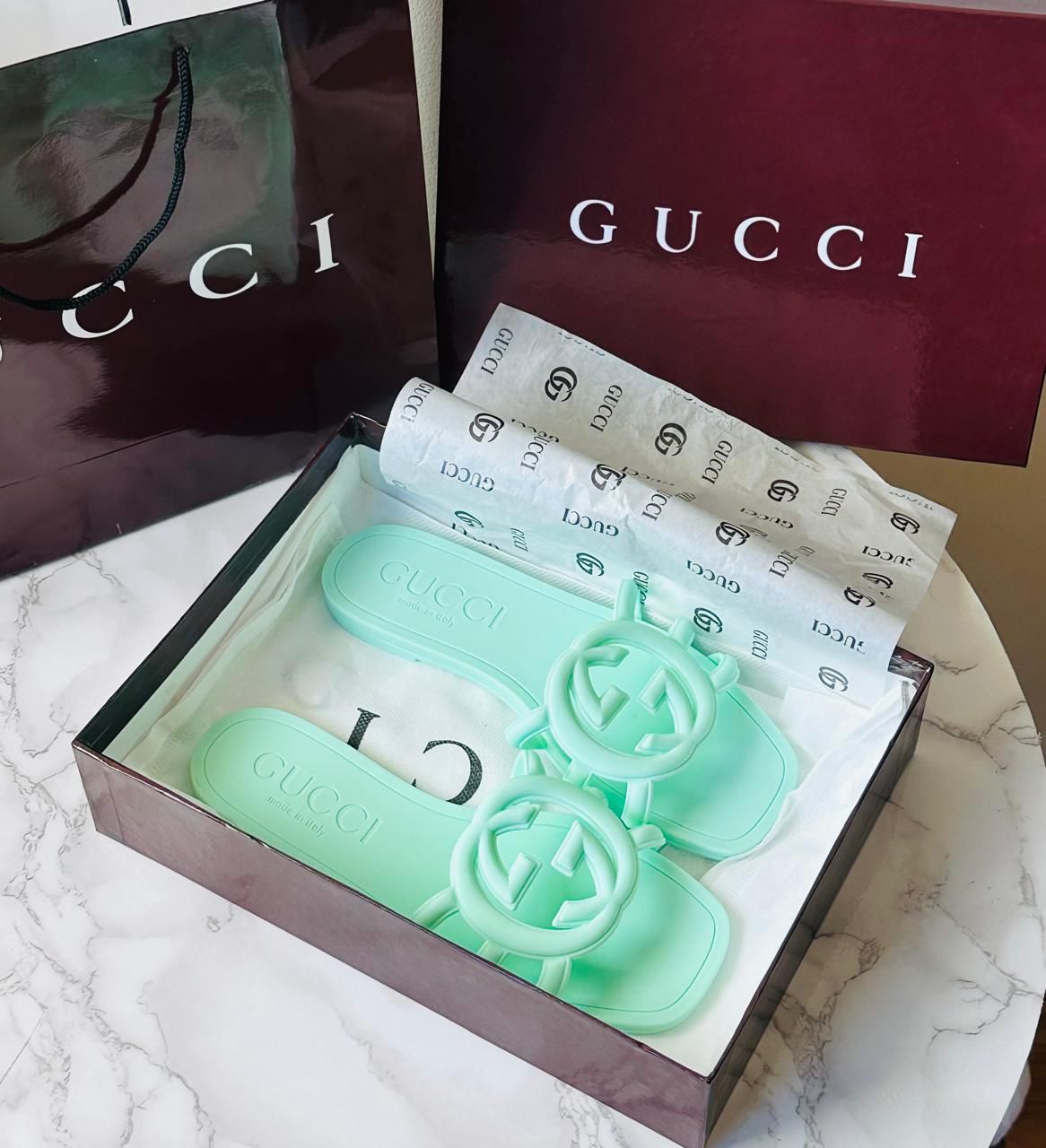G-U-C-C-I Luxury Jelly Slippers – Premium Women Footwear | Summer Edition (Green)