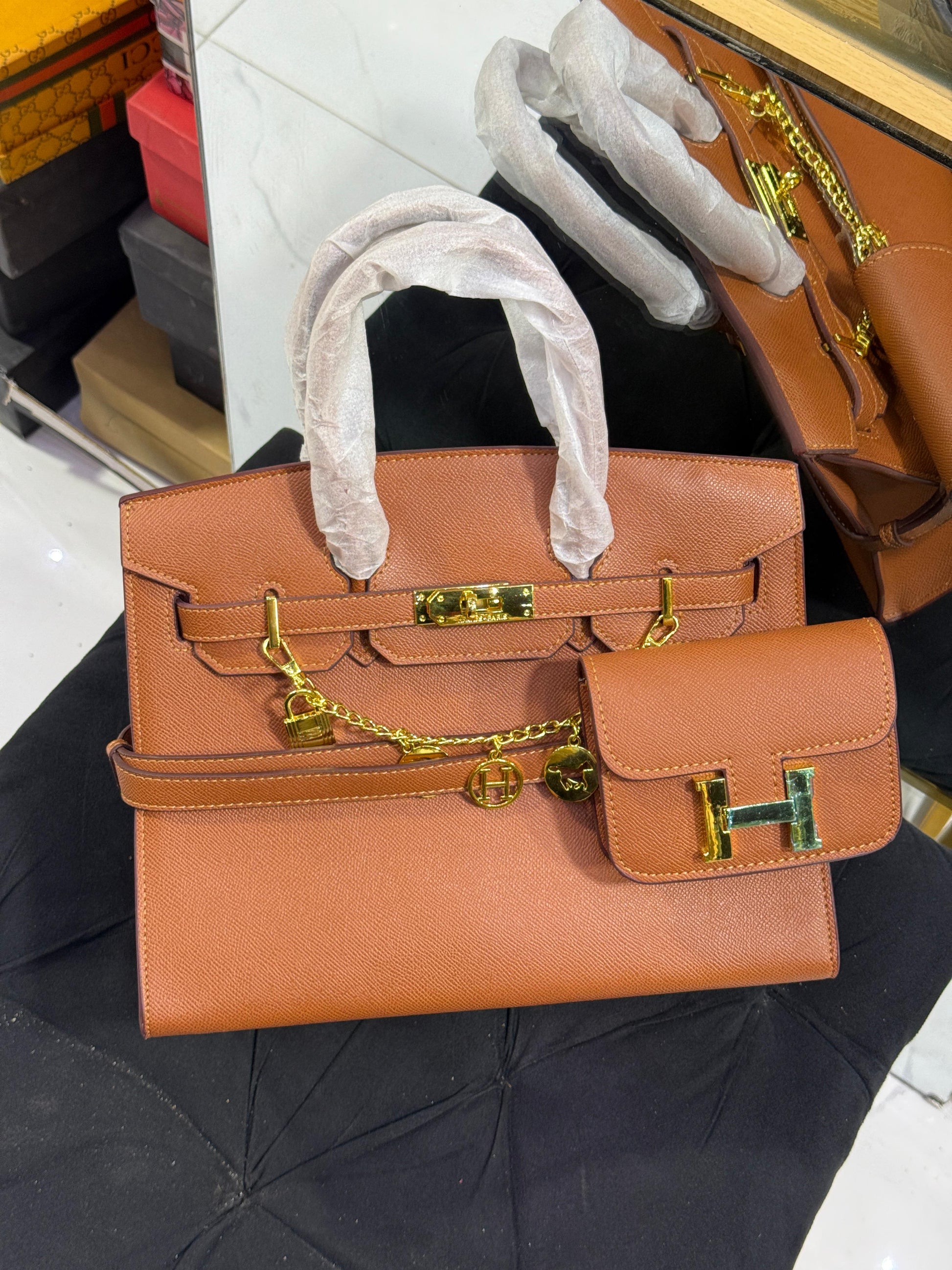 With inside and outside logos, premium leather texture, and the signature Hermes logo lock keychain, this bag is perfect for women who demand elegance, durability, and statement style.