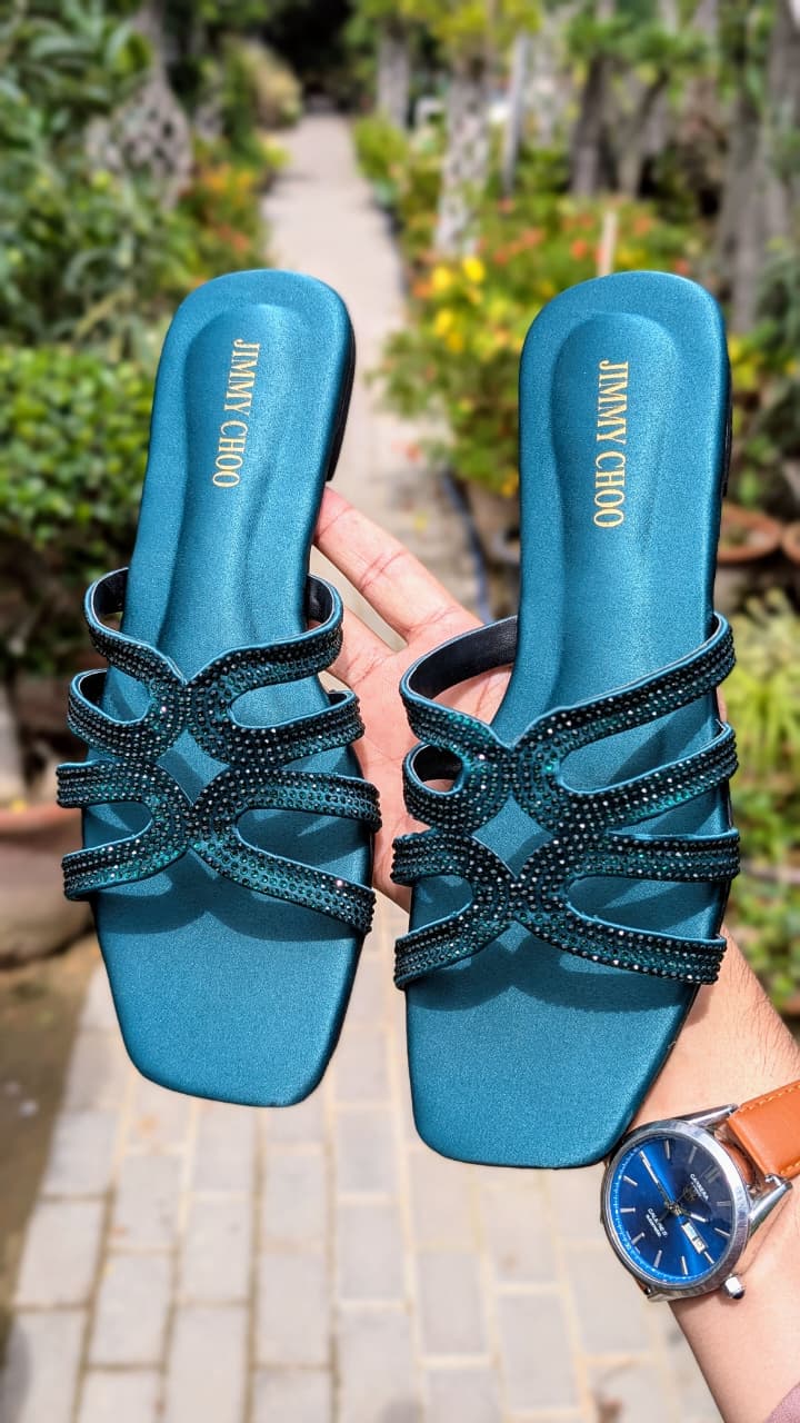 JIMMY CHOO – Women Slippers (Bluish Green)
