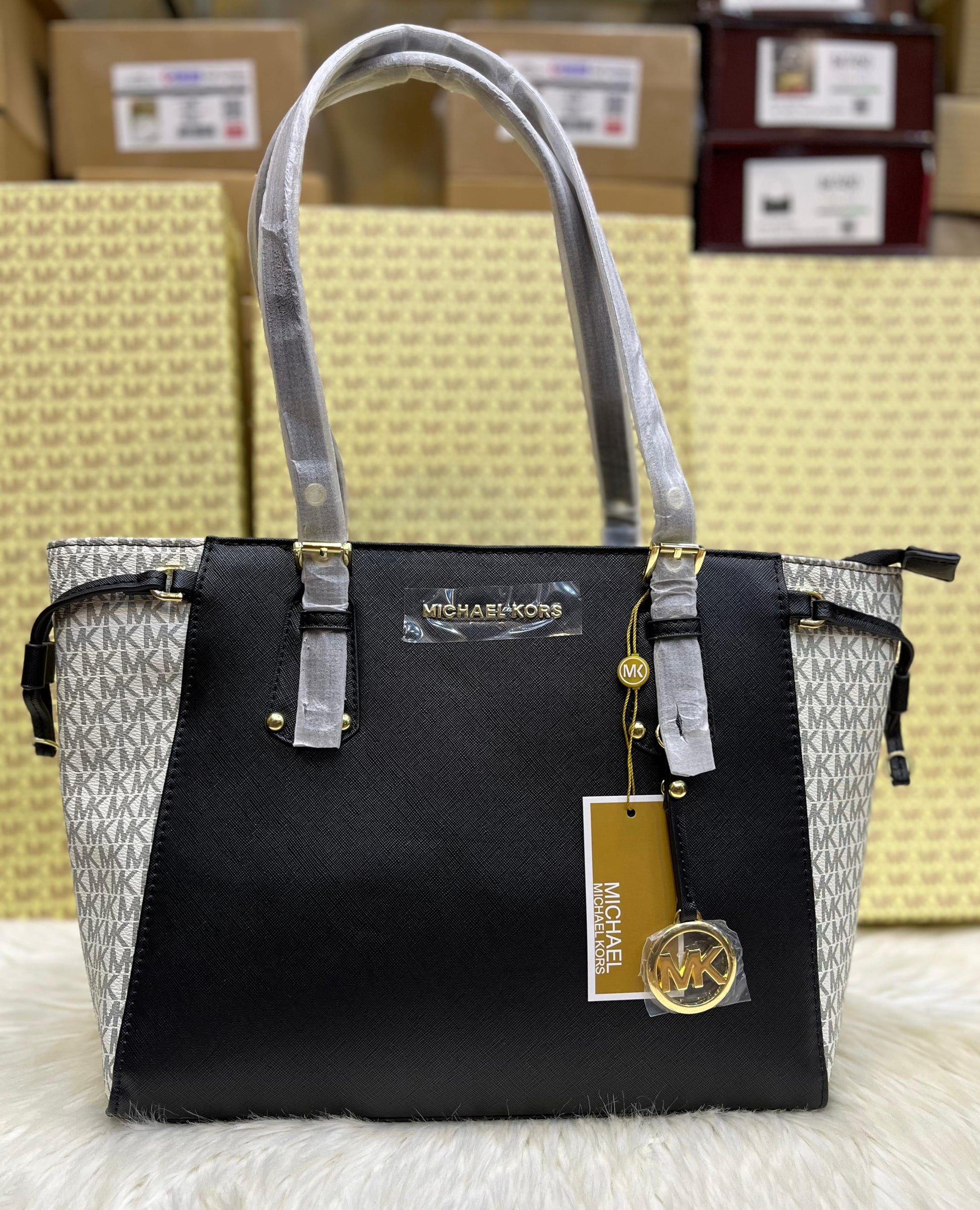 MICHAEL KORS VOYAGER MEDIUM LOGO TOTE – Women Bag (Black & White)