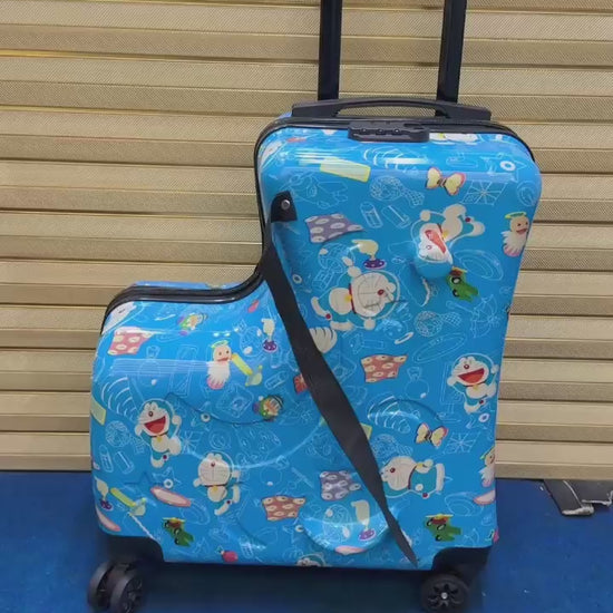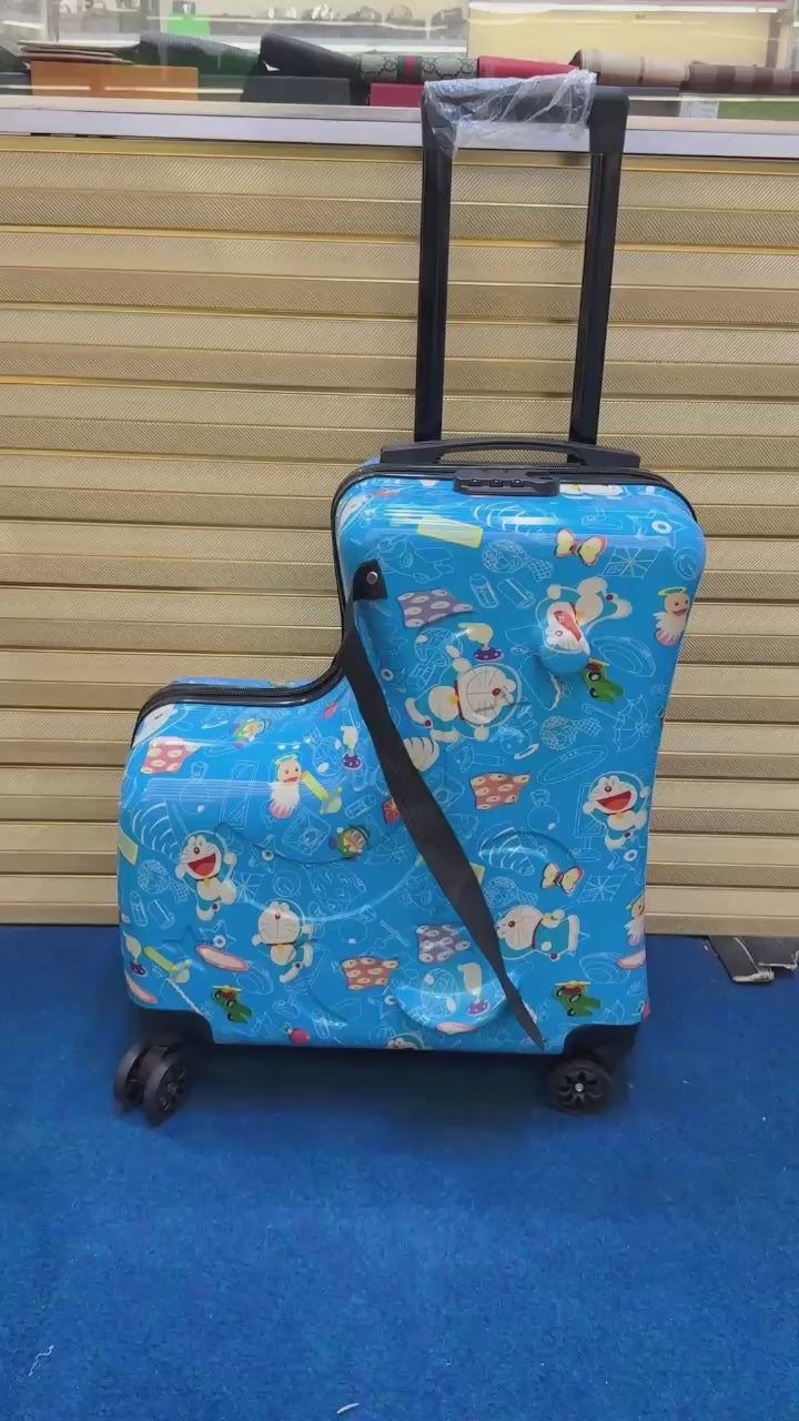 Make travel fun and stress-free with this adorable RIDE-ON kids travel suitcase featuring a playful Duck Train design. Specially designed for children, this 20-inch trolley bag allows kids to sit, ride, or pull their luggage while traveling, making airport journeys and trips more enjoyable.