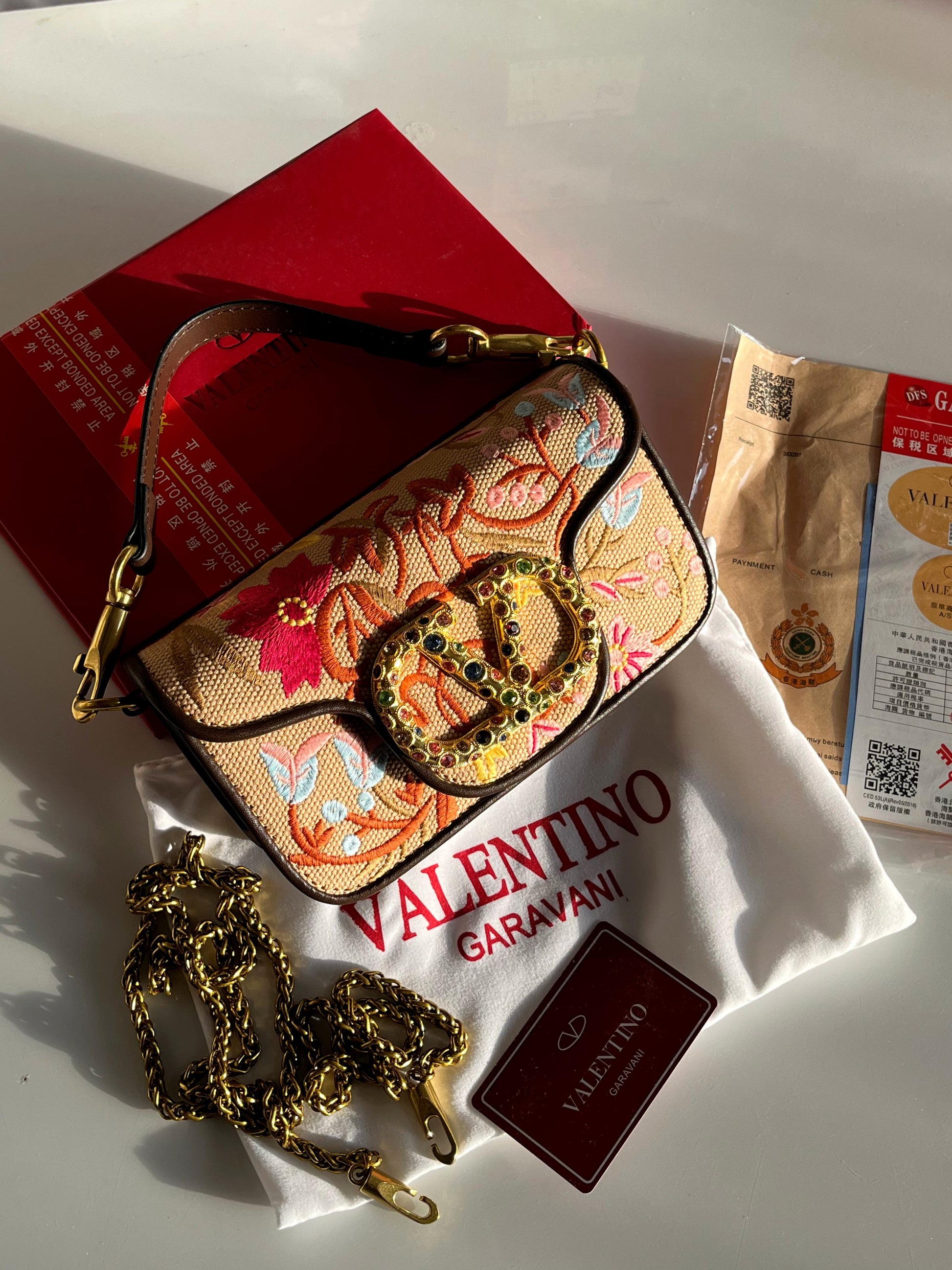 Elevate your style with the V-A-L-E-N-T-I-N-O G-A-R-A-V-A-N-I Locò Small Jewel VLogo Convertible Bag, a luxurious and elegant women bag designed with premium embroidery and iconic detailing. Perfect for both day and evening wear, this piece offers timeless sophistication with modern versatility.