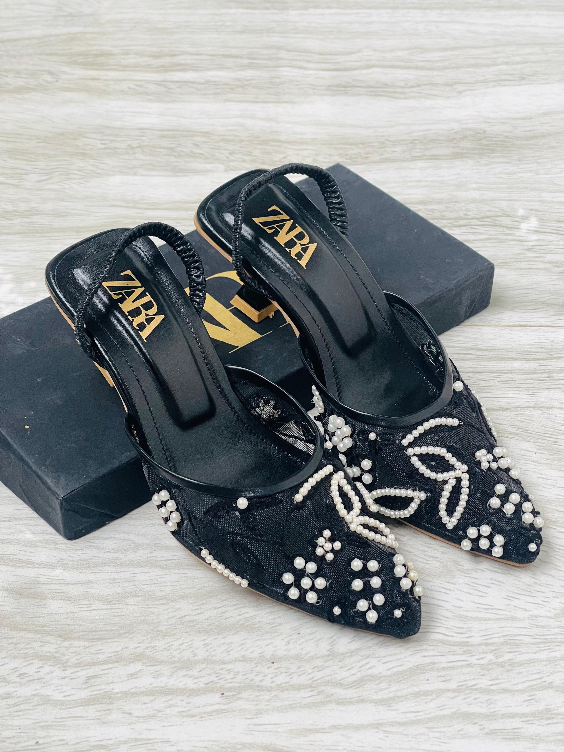 Step into elegance with the ZARA Embroidered Net Pumps for Women, designed to bring a touch of luxury to every step. Featuring a delicate embroidered net design and premium craftsmanship, these pumps are perfect for both casual and formal occasions.