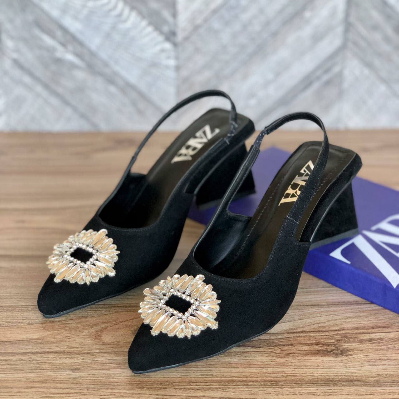 Step into style with the ZARA Triangle Heels, designed for elegance and comfort. Perfect for any occasion, these heels feature a sleek triangle heel design that adds a modern edge to your look. Comes complete with the original brand box, making it perfect for gifting or personal collection.