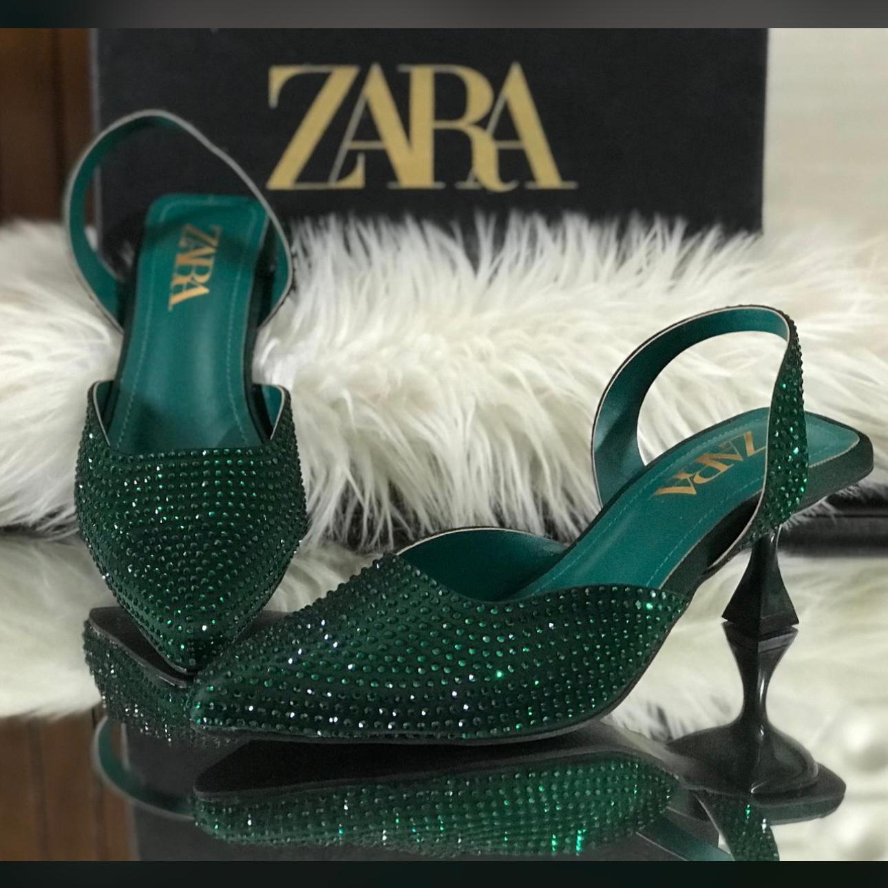 • Step up your style game with the ZARA Women's Heels, available in 3 stunning coloursgolden, green, and black. These versatile heels are perfect for any occasion, offering both comfort and elegance in every step.